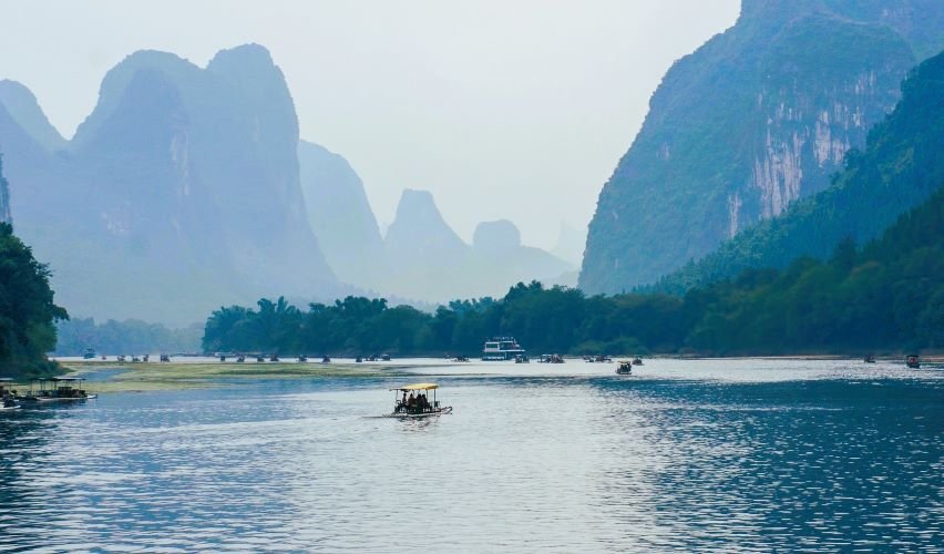 The Li River, winding through the picturesque landscapes of Guilin, is renowned for its stunning karst mountains and serene waters. A cruise along the Li River offers some of the most iconic views in China, with towering peaks reflected in the calm waters. Photography enthusiasts will find endless opportunities to capture the beauty of this region, especially at sunrise or sunset.