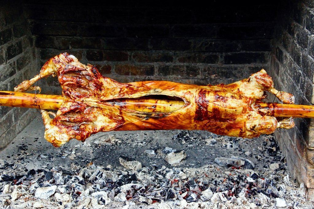 Antikristo lamb is cooked the ancient way—whole pieces arranged around an open fire, taking hours to reach melting tenderness. The meat tastes of the wild herbs the sheep grazed on: thyme, oregano, sage.