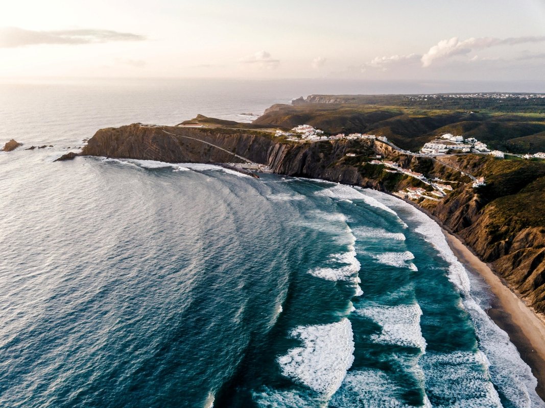 The village is dominated by the Arrifana Fortress, originally built in 1635 to defend the coast and fishing grounds, though destroyed in the 1755 earthquake and later rebuilt. Archaeological excavations revealed a 12th-century Moorish fortress (ribat), the only one of its kind in Portugal.