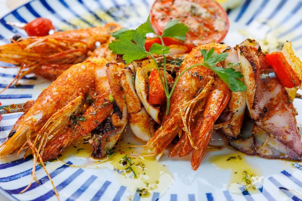 - Grilled prawns and baby squid