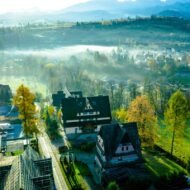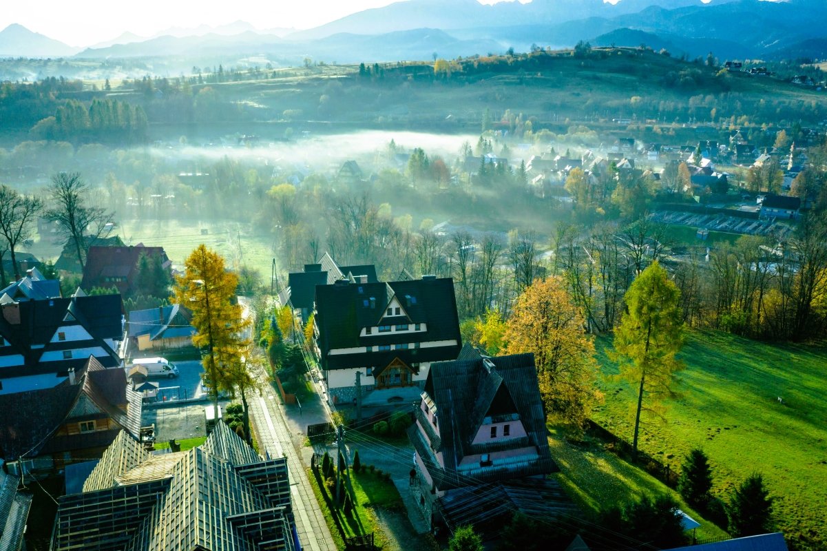 Known as the “winter capital of Poland,” Zakopane transforms into an autumn paradise with the Tatra Mountains providing a dramatic backdrop. The town’s distinctive wooden architecture, known as Zakopane Style, looks particularly striking against fall foliage.