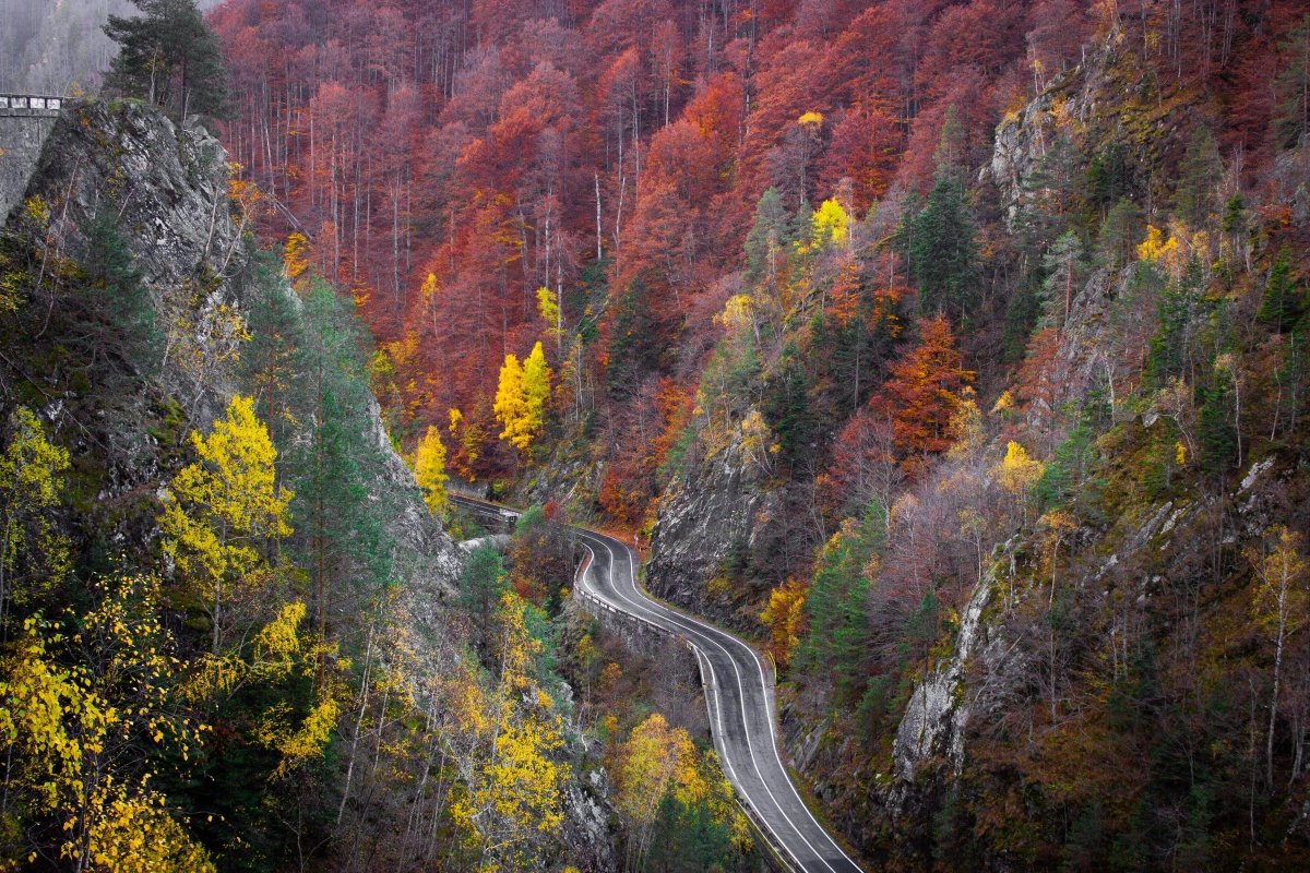 Often called the “world’s most beautiful road,” this serpentine route through the Fagaras Mountains is absolutely magical in autumn. The 90-kilometer stretch connects Transylvania with Wallachia, climbing to over 2,000 meters elevation. October is prime time when the beech and oak forests create a tapestry of warm colors against dramatic rocky peaks.