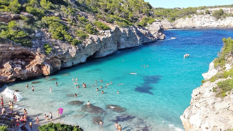 Calo des Moro, six kilometers from Santanyi, ( on the southeast of Mallorca ,the largest island in the Balearic Islands, which are part of Spain and located in the Mediterranean ) is the most visited beach in the area.