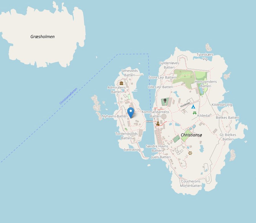 - Christianso : Store Tarn. The fortress tower is the landmark of the archipelago. However, it is preserved only as a ruin, which is surmounted by the 1805 supplemented lighthouse, with the first mirror fireworks of Denmark. Open: Open June-Sept. 12.00-16.00.