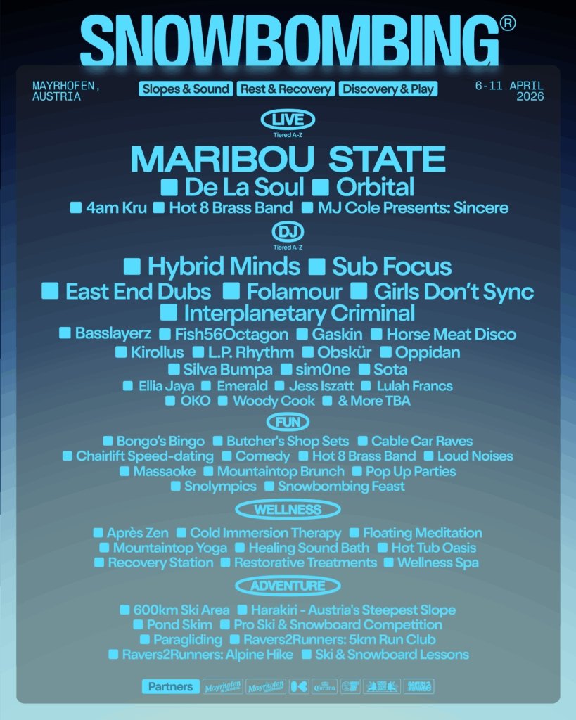 - Snowbombing (Mayrhofen, Austria): The OG of alpine music festivals. It’s known for quirky venues—igloo raves, forest parties, and street parties—mixing electronic acts with live bands like Liam Gallagher.