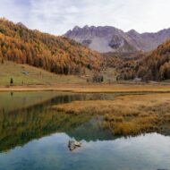 Nestled in the heart of the Brenta Dolomites, Lago Nambino feels like stepping into a fairy tale. This small but stunning lake sits at 1,180 meters elevation, surrounded by dense forests and dramatic limestone peaks.