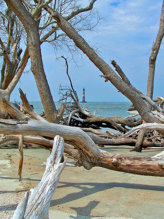 - Morris Island Lighthouse , The lighthouse can be accessed via the Lighthouse Inlet at the end of East Ashley Avenue , viewable from the scenic beach