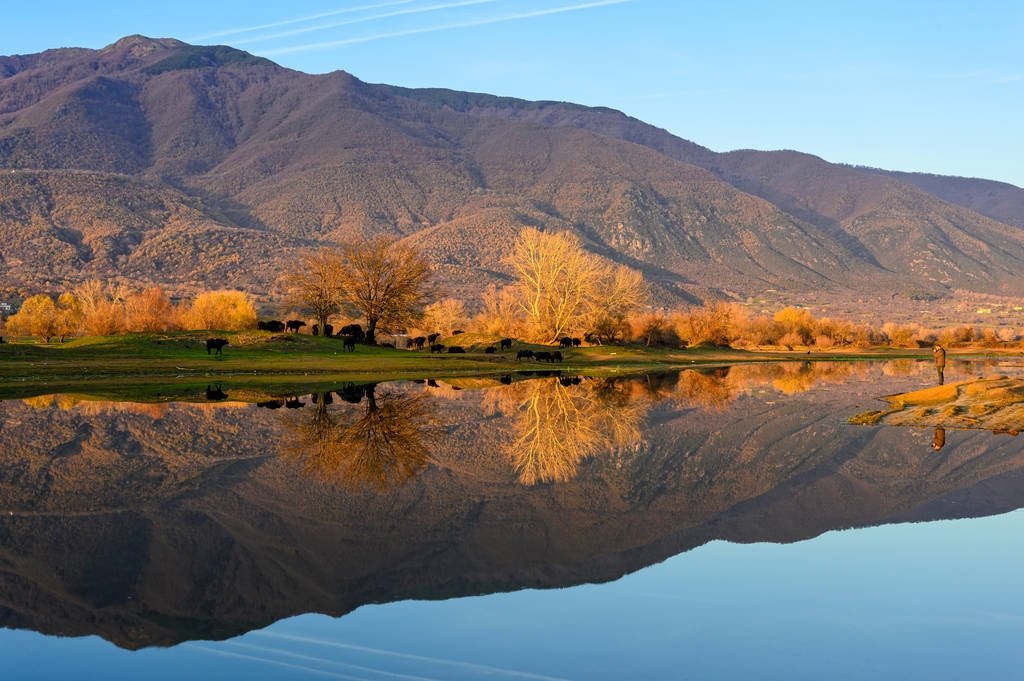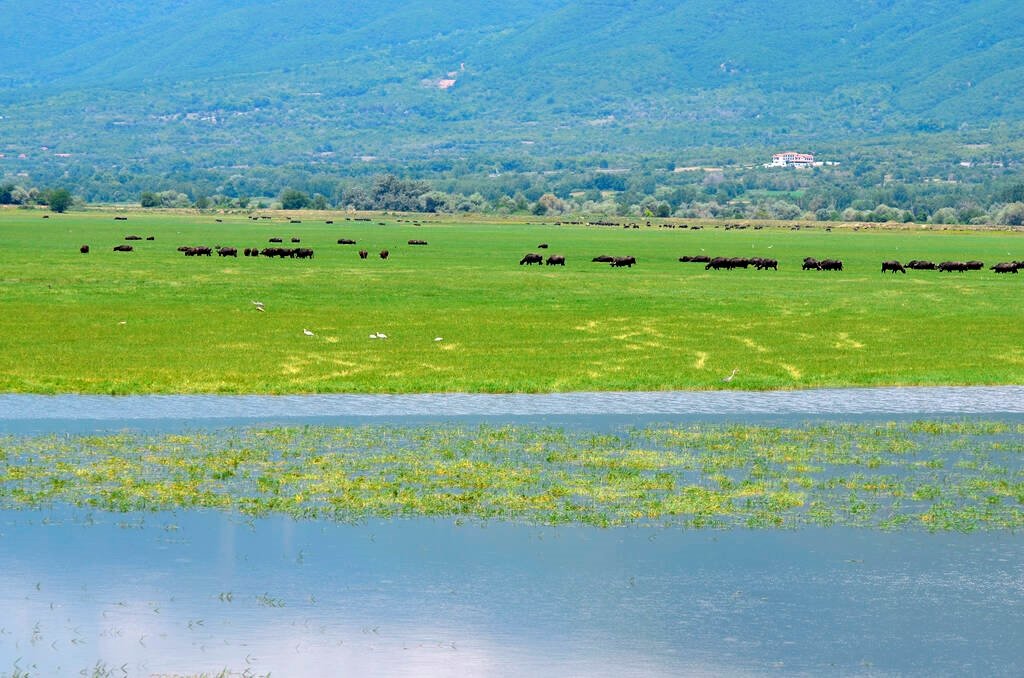 - Water Buffalo: The lake is home to the largest population of water buffalo in Greece. You can see these gentle giants grazing in the wetlands or even wading in the water.