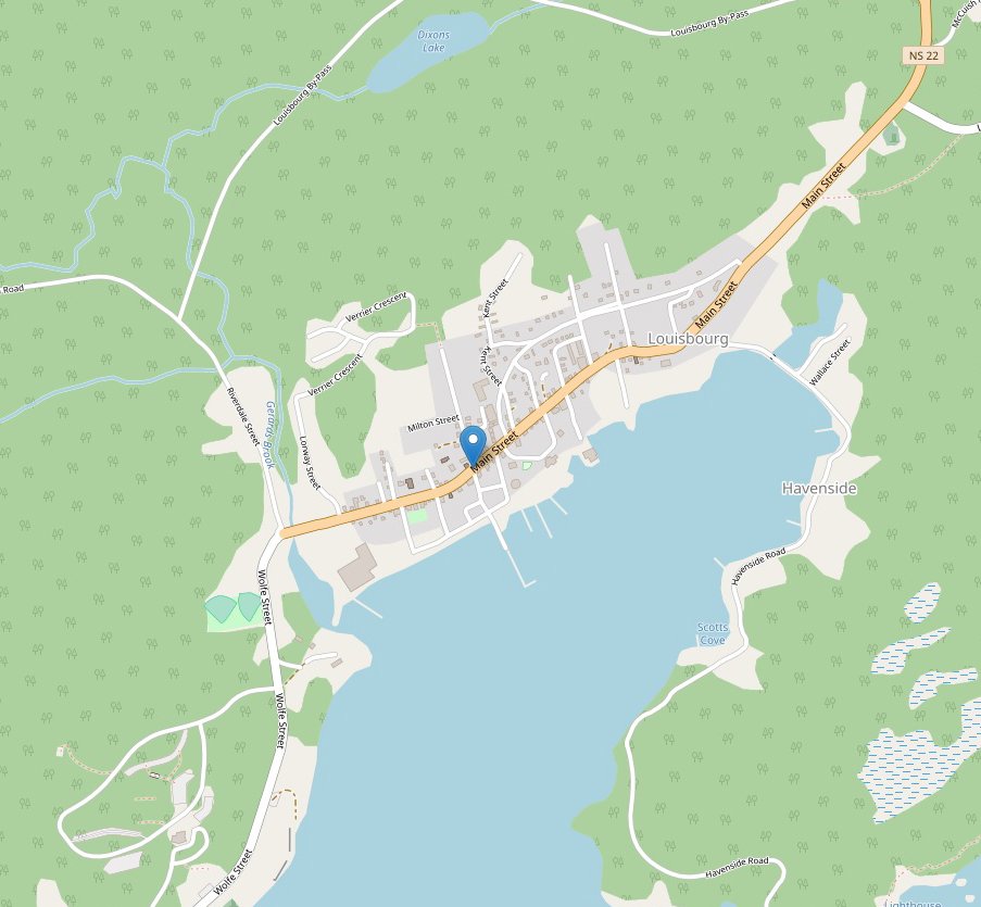 Access : Coordinates: 45.919861, -59.972806 / The railway no longer runs here Highway 22 is the main road in and out of town.