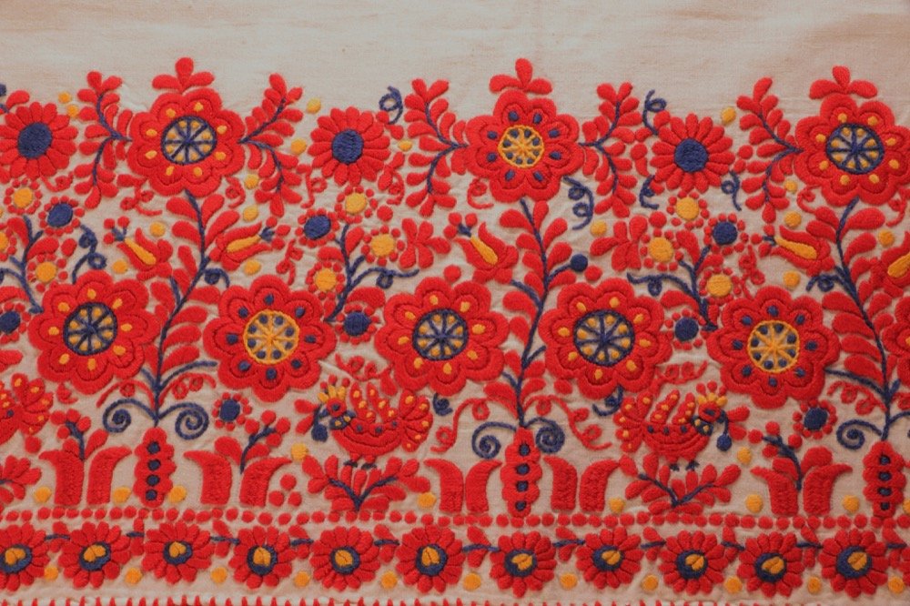 The folk art of the Roman Catholic Matyó community in and around the town of Mezőkövesd in north-eastern Hungary is characterized by floral motifs that are found in flat-stitch embroidery and ornamented objects, and in 2012 Matyó embroidery, practiced as a communal activity, was made a UNESCO Intangible Cultural World Heritage.