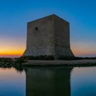 View of the Tamarit Tower, located in the heart of the Salinas de Santa Pola park
