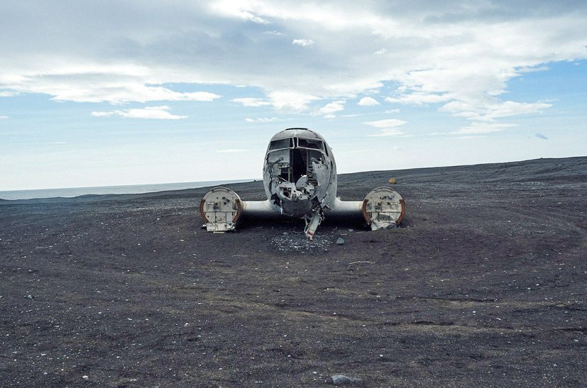 The black sandy beach of Solheimasandur in the south of Iceland, not far from Vik i Myrdal’s, is less than 160 kilometers from Reyjkavik, which should take about two hours depending on the weather conditions.