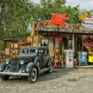 Understand : Route 66 is one of the essential icons of America, both for Americans and for people abroad. It represents a multitude of ideas: freedom, migration West, and the loneliness of the American heartland. The highway marked the final taming of the Wild West as it opened in 1926; the last section of the route was paved in 1938. Until the Interstates were built in the post-war years, Route 66 was, together with the Lincoln Highway, among the few reliable roads across the Rocky Mountains.
