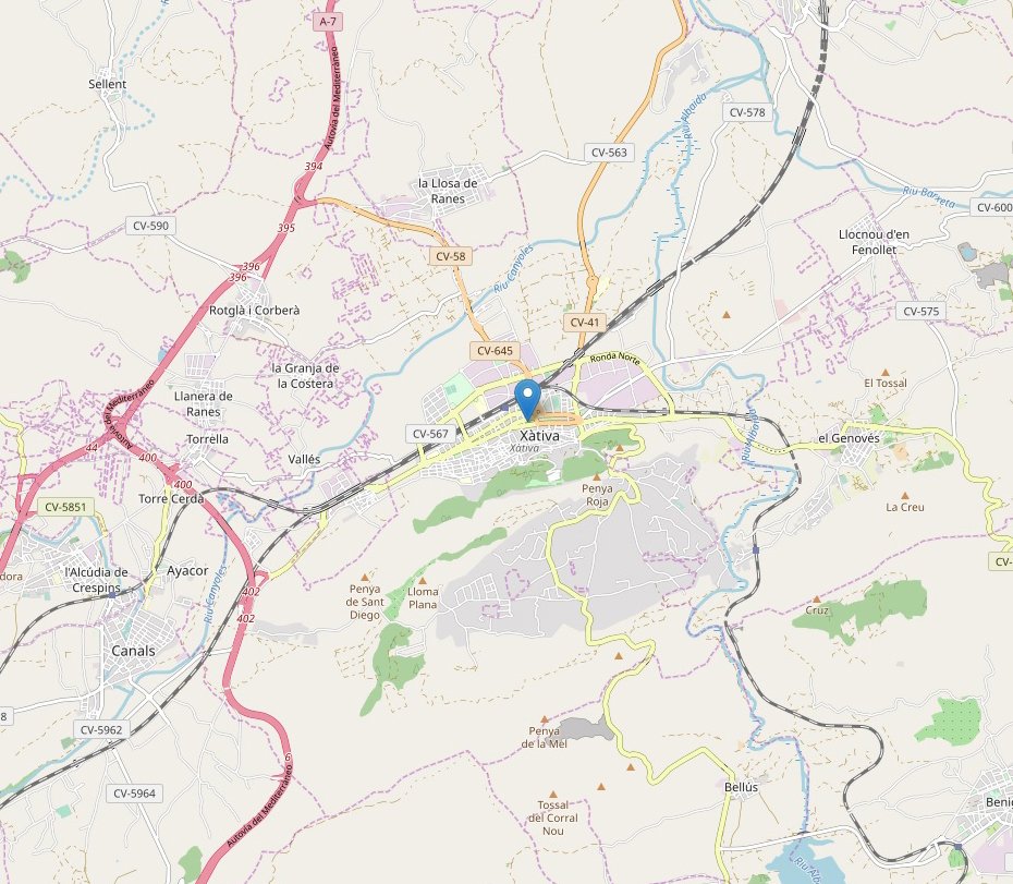 Access : Coordinates: 38.990278, -0.521111 / By train : 10 minutes from the historic centre is located The railway station , the city is connected with regional trains the cities of Valencia , Murcia, Cartagena , Alicante, Albacete , Ciudad Real, Teruel, Zaragoza and Huesca. Long-distance routes are links it to the south of France and Murcia.